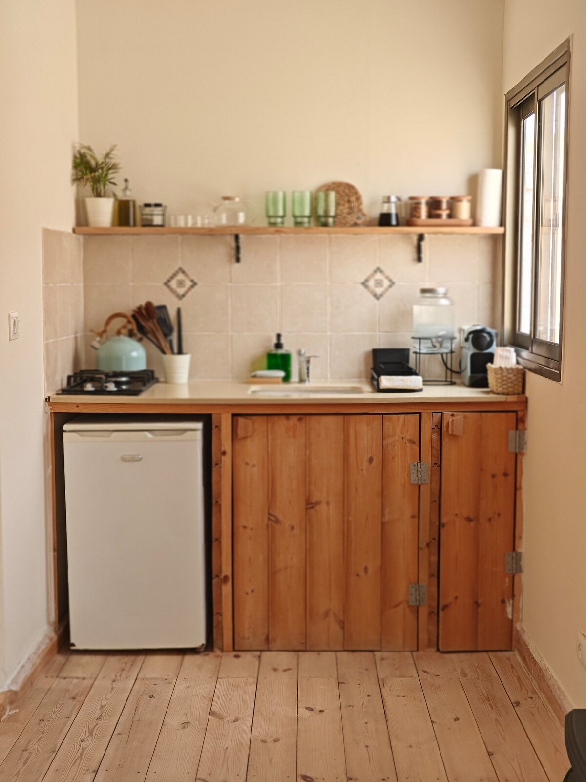 Очаровательное жилье, расположенное на втором этаже, с отдельным входом и видом на пустыню. Вы можете начать утро с кофе перед впечатляющим восходом солнца на собственной террасе с видом на горы. Здесь вы найдете просторную спальню, рабочую зону, ванную комнату и полностью оборудованную кухню рядом. Добро пожаловать в Негев, чтобы побродить по пустыне — подняться на песчаную дюну, прогуляться по Эйн-Экеву или просто заблудиться в оврагах Нахаль-Хаварим.