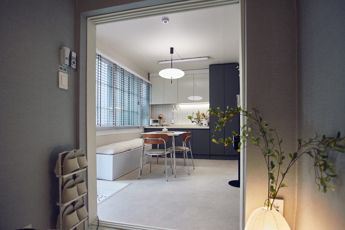 Flat43 — антикварный рынок Итэвон, европейская квартира премиум-класса Это второе место, где винтажный стиль и современная чувствительность Flat43 начались в Лондоне. Прогулка до📍 Итэвона занимает 5 минут. 2 🛏️ спальни · 2 кровати · до 4 человек Полностью ❄️ кондиционированное и отапливаемое жилье. 📶 Wi-Fi/самостоятельное прибытие/кухня. Если вы ищете собственное тихое и стильное исцеление, расслабьтесь в Flat43.