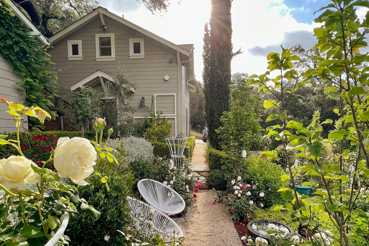 Отдохните в коттедже Thornsberry, роскошном винодельческом уединенном месте в 5 минутах от площади Сономы. Это уникальное жилье состоит из двух отдельных коттеджей, в каждом из которых есть отдельная кровать/ванна, идеально подходящая для гостей, ищущих уединения и единения. Насладитесь сводчатыми потолками, большой террасой, собственной гидромассажной ванной и местом для костра под старыми дубами. 5 минут от площади Сономы, 3 минуты до старейших виноделен в Калифорнии, или прогуляйтесь пешком или на велосипеде до Gundlach Bundschu в конце нашей дороги. Вас ждет спокойный отдых!
