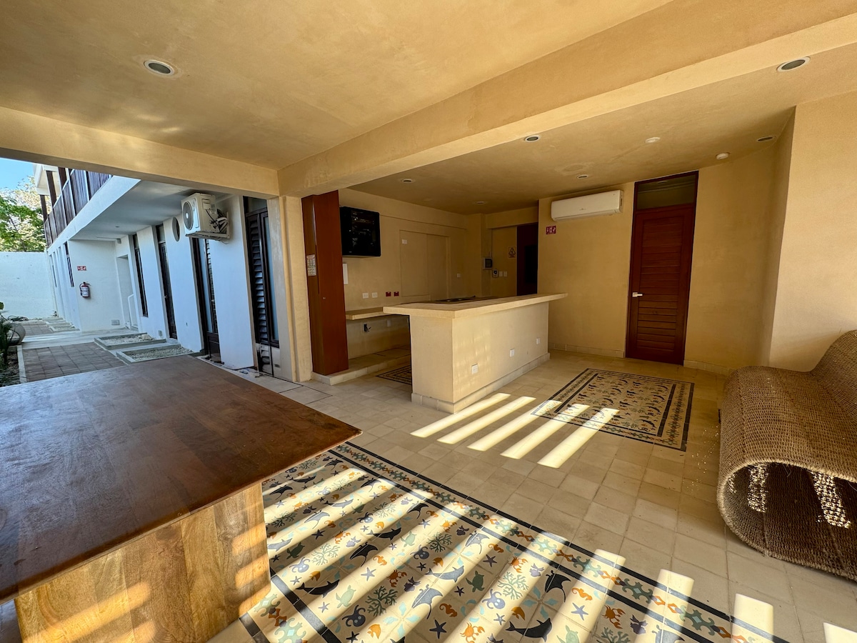 Tu familia estará cerca de todo si te hospedas en este alojamiento a 1 minuto de la Plaza Central de Chicxulub. Dentro del Complejo de departamentos Royal Beach I, un espacio super funcional y con espacios bien aprovechados para disfrutar de tu estancia frente al Mar.