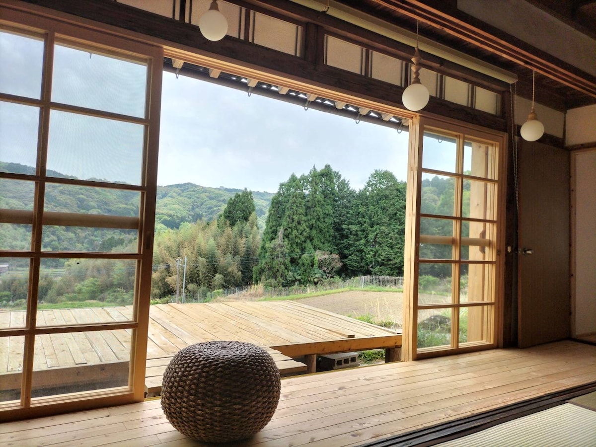 Аренда всего дома, вилла с горячими источниками, вид на горы из окна, 5 минут на машине до улицы с горячими источниками Курокава, Wi-Fi, парковка