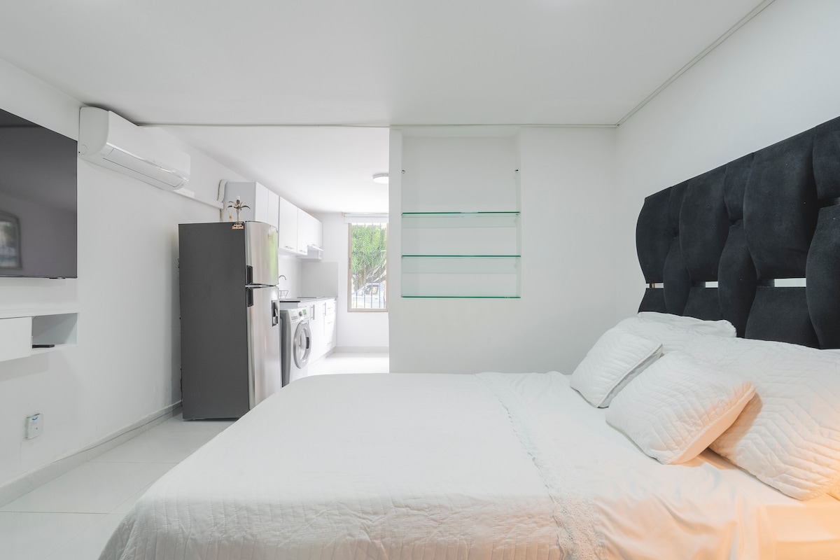 ** ЭКСКЛЮЗИВНОЕ ЖИЛЬЕ БЕЗ СБОРОВ ЗА УСЛУГИ AIRBNB ** Этот лофт площадью 36 кв. м с частным джакузи и потрясающим видом на Кали расположен в тихом районе Кристалес. Он идеально подходит для 4 человек и полностью оборудован для вашего комфорта. В здании есть такие удобства, как коворкинг, тренажерный зал, джакузи, зона для пикника, кинотеатр на открытом воздухе и многое другое. Всего в нескольких минутах от парка Перро, сочетайте спокойствие, современность и комфорт в идеальной обстановке для вашего пребывания!