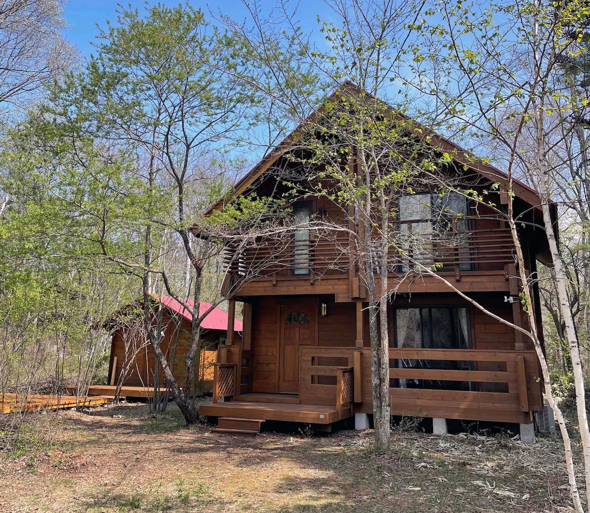 Целый домик в лесу на высоте 1100 м.Березы приветствуют вас от входа, и наслаждайтесь природой в тихом районе! Интерьер украшен большим количеством дерева и барбекю на просторной деревянной террасе. Мини-дома оборудована домашним кинотеатром с большим экраном. Дровяная печь с большими окнами, сделанная Уотерфордом, Исландия. Также есть хороший доступ к Манза Онсен, Кусацу Онсен, Каруидзава Сити, Каруидзава Сноу Парк, горнолыжный курорт Парколете Цумагои и горнолыжный курорт Кадзава (80% солнечных дней зимой). До отеля Green Plaza Karuizawa Day Hot Spring (700 м) можно дойти пешком. Karuizawa Toy Kingdom (4 минуты на машине).