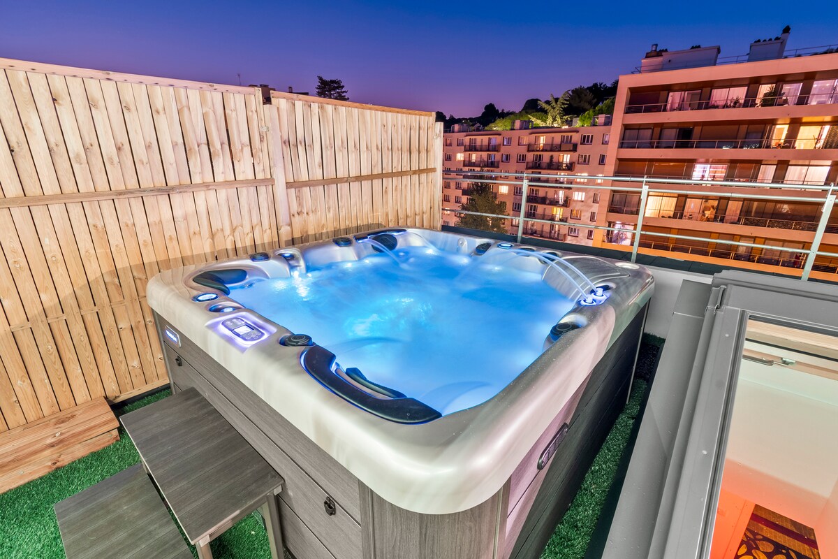 Расслабьтесь и отправляйтесь в этот уникальный и расслабляющий дом Жилье целиком будет зарезервировано для вас, а также все его удобства, в том числе: Джакузи Сауна Смарт-телевизор с Netflix и Disney + в вашем распоряжении. Wi-Fi (оптоволоконный) Оборудованная кухня Для вашего комфорта двуспальная кровать размера King size и роскошное постельное белье. Регулируемая/переменная яркость в квартире. До железнодорожного вокзала можно дойти пешком (3 минуты). Рядом с Парижем на транспорте и автомобиле. Бесплатная парковка около дома.