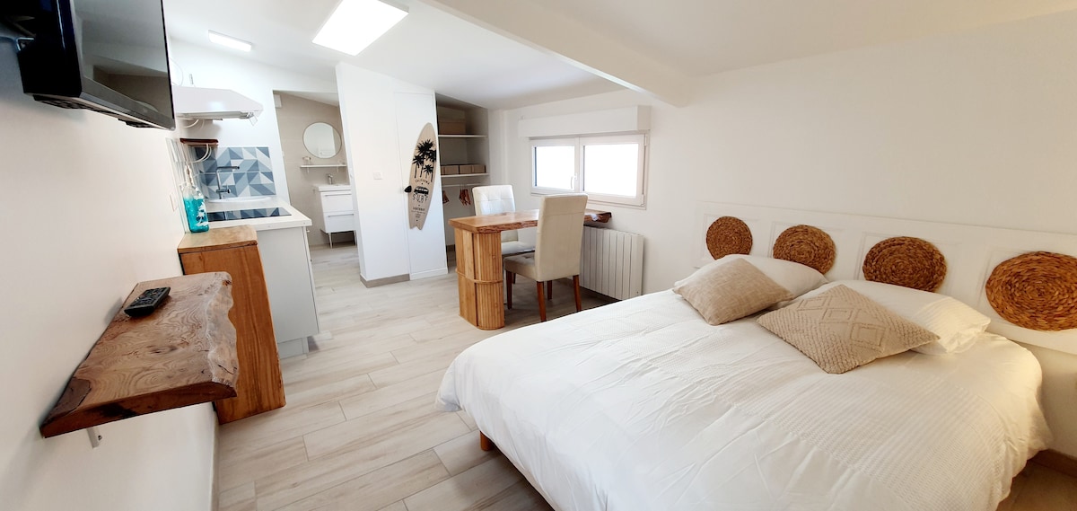 Добро пожаловать в нашу студию площадью 35 кв. м. Она расположена в центре деревни в муниципалитете Ивре-л'Эвек. Парковка на улице или на стоянке менее чем в 100 метрах от жилья. Есть автобусная линия, которая доставит вас в Ле-Ман. Отдельный вход от нашего главного входа. В этом жилье есть диван-кровать, постельное белье и полотенца. В вашем распоряжении мини-кухня. Выходные 24 июня: бронирование минимум на 3 ночи