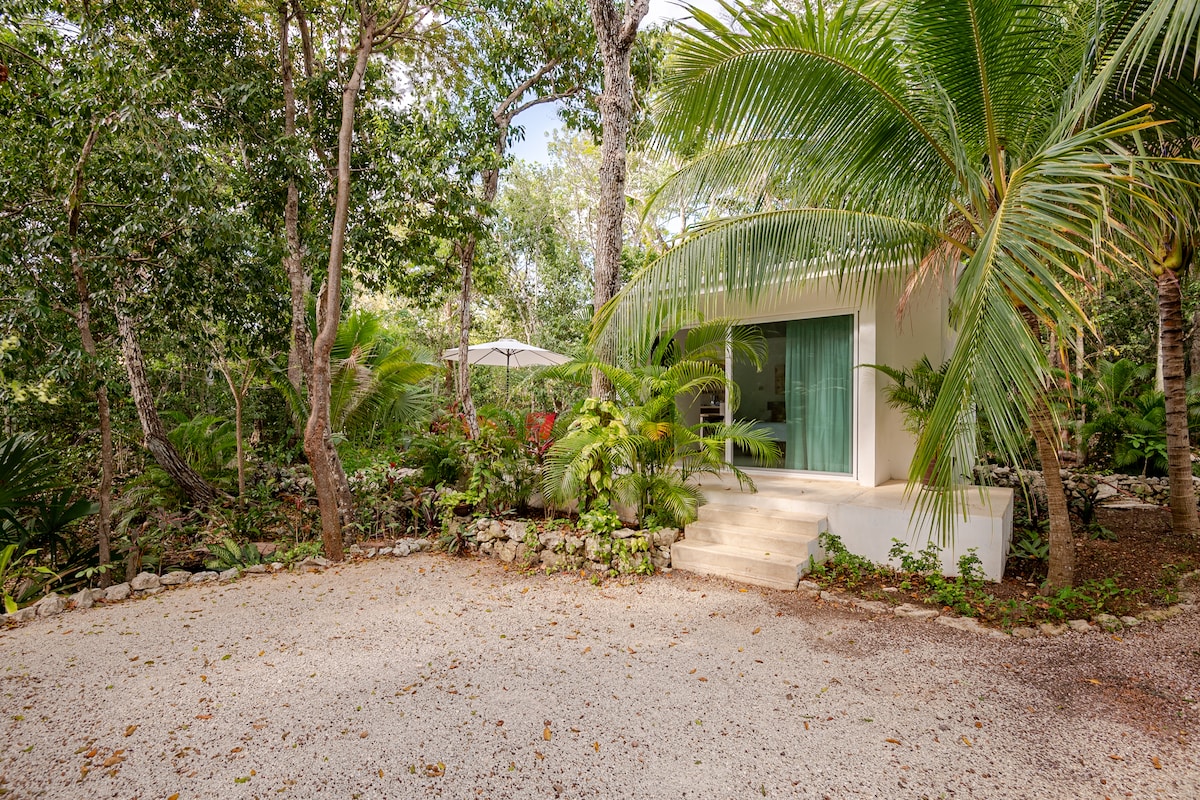 Our villa with a private plunge pool is located in the middle of the Mayan jungle inside Dos Ojos Cenote Park. It is surrounded by cenotes among them, the famous Dos Ojos and Sac Actum. The luxuriant nature and the peaceful vibes will allow you to relax as never before. You'll be waking up with the sounds of birds and enjoy the jungle sounds in a very safe and comfortable house.