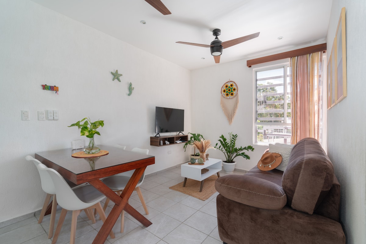 Комфортабельная и ярко освещенная квартира Bamboo расположена в новом жилом комплексе Aldea Tulum, в 8 км от деревни Тулум и в 45 км от аэропорта Тулум, с одной стороны Замны и примерно в 3 минутах от Cenote Corazón, в 7 минутах езды от Escondido и Cristal cenotes и примерно в 10 минутах от лагуны Каан Луум. Вы получите доступ к 1 частному и открытому парковочному месту для 1 частного и открытого парковочного места. Удобства района: общий бассейн, детская игровая площадка и баскетбольная площадка.