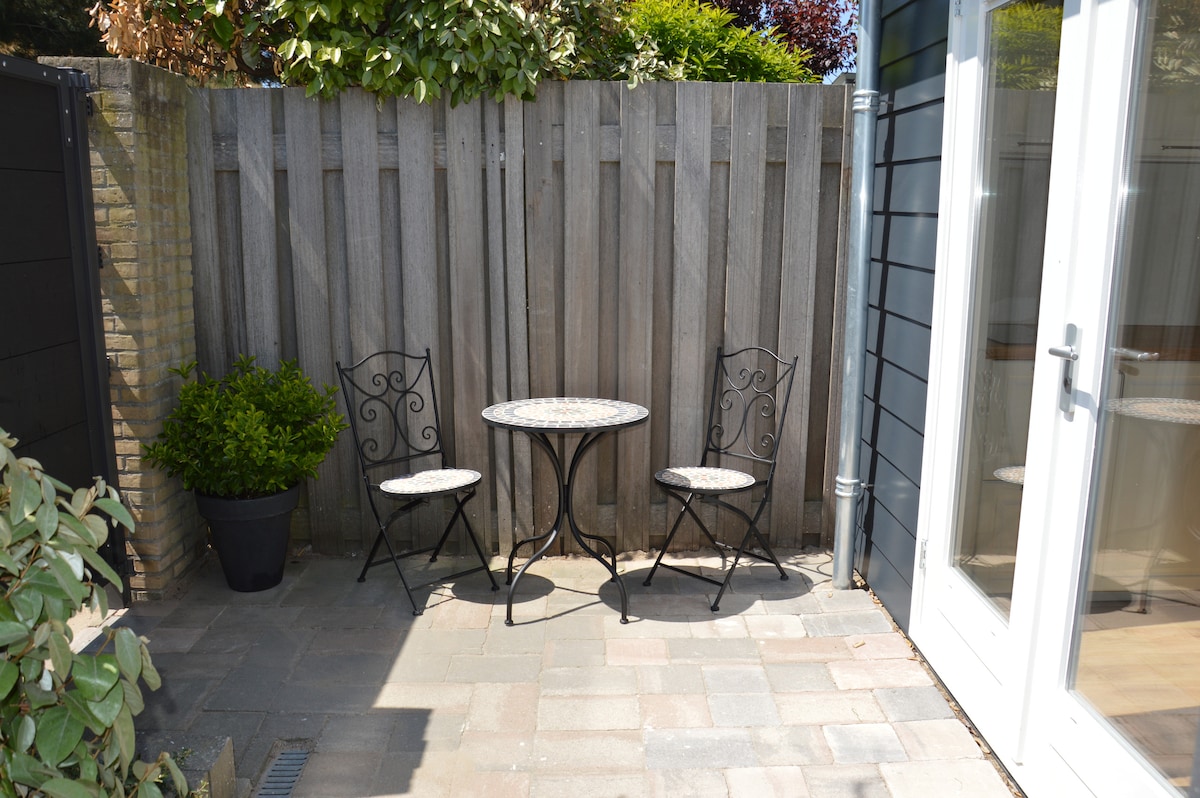 Наше солнечное садовое шале свободно расположено в нашем 400-метровом саду за домом. В шале есть раздвижные двери в сад, раскладной диван-кровать (двуспальная), открытая кухня, пол с подогревом и дровяная печь. Наслаждайтесь умиротворением на собственной солнечной террасе среди цветов и растений! Расположен в самом сердце цветочной луковицы недалеко от побережья, в 7 минутах ходьбы от железнодорожного вокзала.