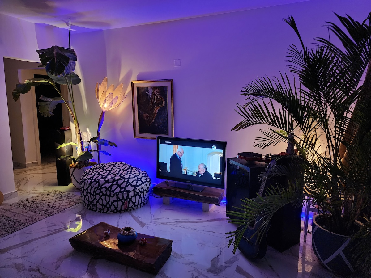 Welcome to our apartment, perfect for families or groups of up to 8 guests. 2 Bedrooms: Each bedroom is equipped with comfortable beds. 4 Beds: Ample sleeping arrangements for all guests. 2 Full Bathrooms: Modern fixtures and amenities. Modern, Expensive Furniture: High-end, stylish decor. High-Speed WiFi: Complimentary for work and leisure. Located in a prime area with easy access to local attractions, dining, and entertainment. Book your stay with us and experience comfort and luxury.