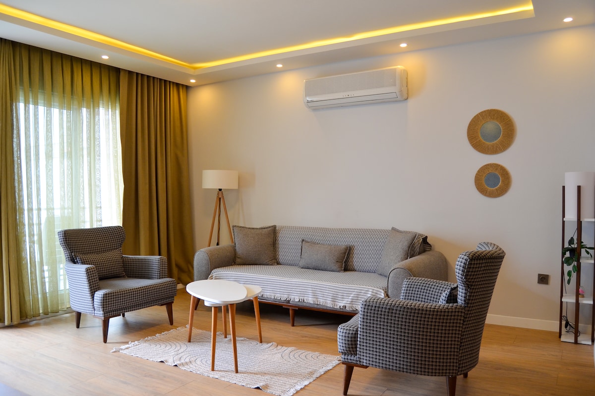 Наслаждайтесь проживанием в этой недавно построенной стильной и комфортабельной квартире, расположенной в центре Бодрума, в нескольких минутах ходьбы от пристани, пляжа, ресторанов, кафе, баров и рынков.