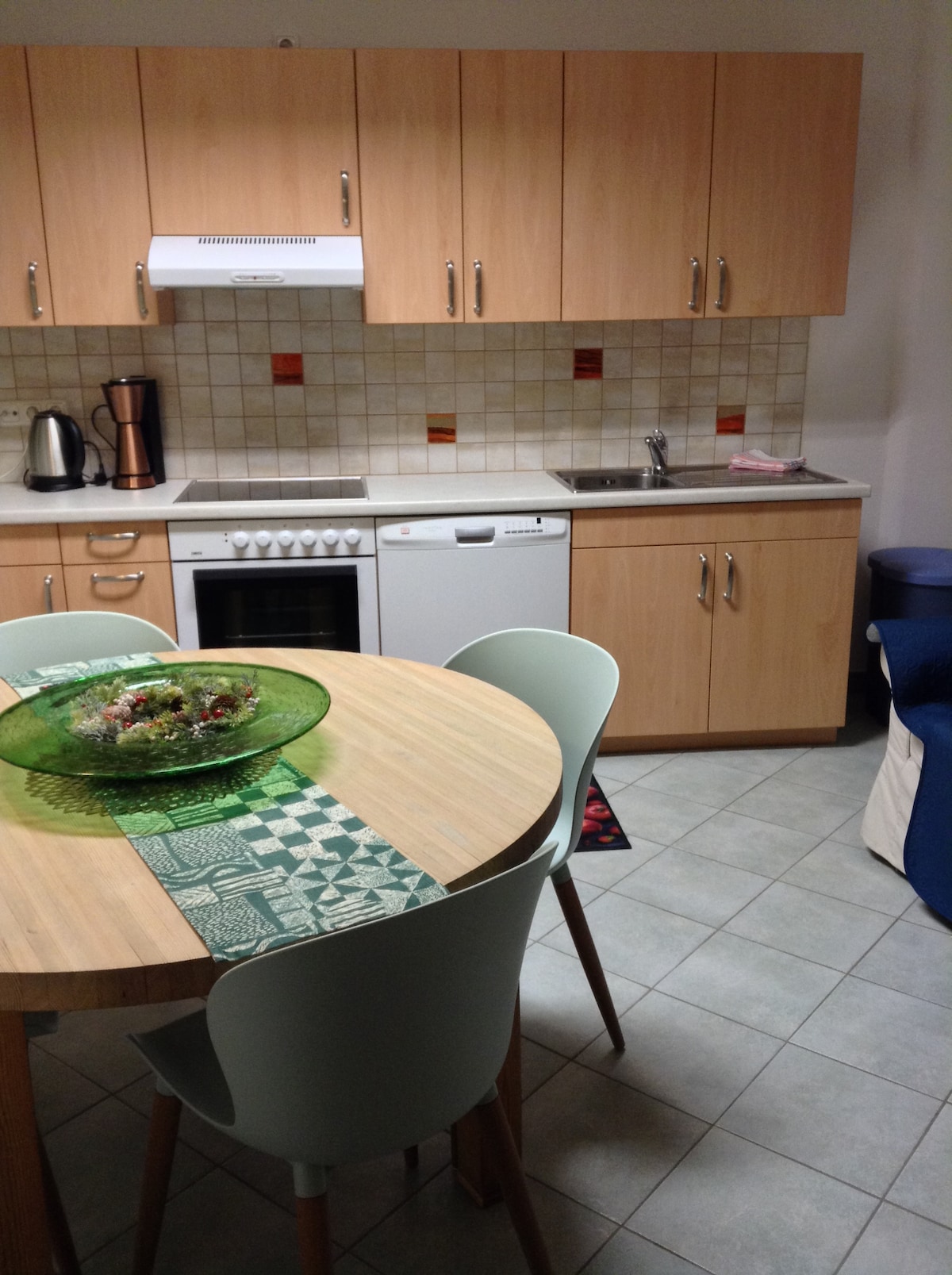 Краткий обзор квартиры 4 тарелки Ceran Feld Большая посудомоечная машина с холодильником / морозильной камерой, чайник, тостер. Кофеварка, кастрюли, посуда Уютная гостиная с телевизором с плоским экраном и радио. 2 спальни с двуспальными кроватями, телевизором и террасой. Аллергическое одеяло без обивки Постельное белье и полотенца Большой душ, туалет, полотенце для умывальника