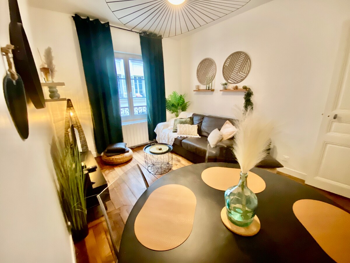Винтажная квартира Эммы в Пантине Идеально подходит для одиночных путешественников или пар, это уютное убежище сочетает в себе индустриальное очарование с современным комфортом. Благодаря инсайдерскому путеводителю Эммы и поддержке Виктора ваше пребывание обещает быть исключительным! 🌟 Квартира идеально расположена: в 1 минуте ходьбы от метро Hoche, в 5 минутах от канала Ourcq и отличных культурных мест, таких как Филармония, Зенит и Ла-Виллет.