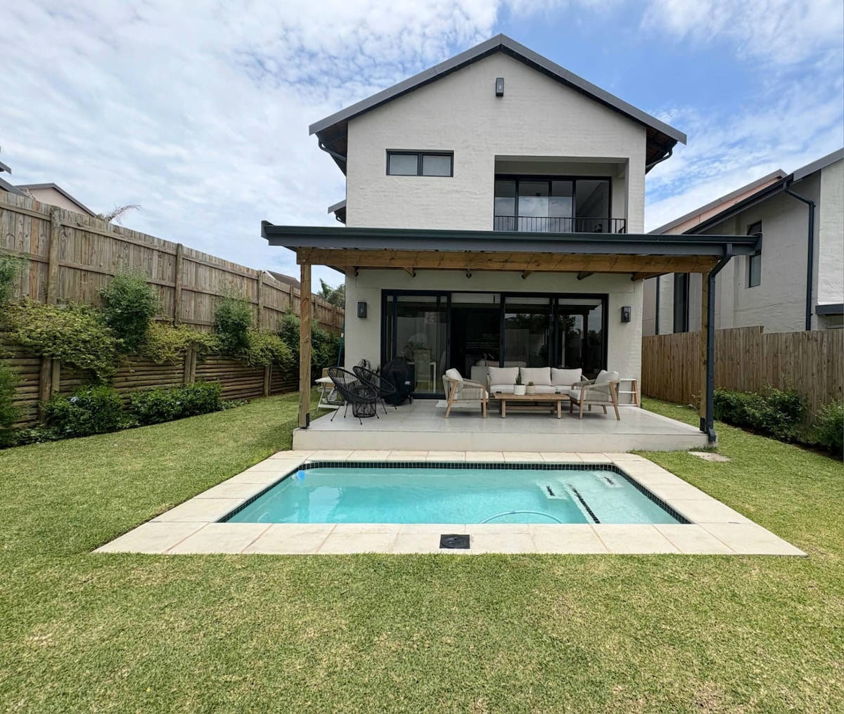 Красивый пляжный дом в калифорнийском стиле с видом на Индийский океан. Наблюдайте за игрой дельфинов каждое утро, не выходя из дома или бассейна, или совершите 5-минутную прогулку по частной пляжной дорожке, ведущей к уединенному тихому пляжу, если вы хотите поплавать или отдохнуть на пляже. Главная спальня с ванной комнатой расположена на верхнем этаже, две спальни - на нижнем и еще две - на мезонине. Идеально подходит для семей или друзей, ищущих расслабляющего отдыха.