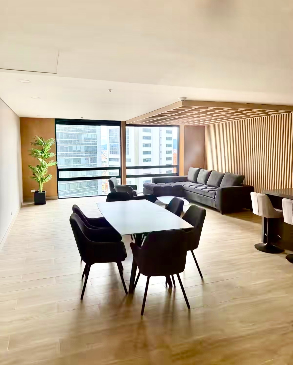 Relax in this cozy and modern loft located in the peaceful new community of North Point City in the north of Bogotá. Just steps away from shops, restaurants, and public transportation, it offers the perfect blend of comfort and convenience for an effortless stay. Fully furnished and equipped with all the kitchenware and home appliances you may need. Ideal for both short visits and extended stays.