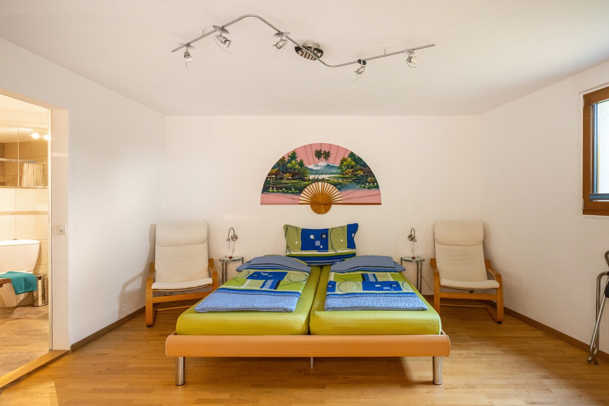 Светлая студия (около 37 кв. м) расположена в тихом частном доме в квартале Мури, кантон Аргау. В студии есть 1 двуспальная кровать (размер Queen size), стол с 2 стульями, шкаф, диван, небольшая кухня со сковородами, посудой и столовыми приборами (без духовки, без микроволновой печи), кофемашина, чайник и холодильник. Есть Wi-Fi. Ванная комната с душем/туалетом. Предоставляются постельное белье, банные и кухонные полотенца. Парковка прямо перед студией.